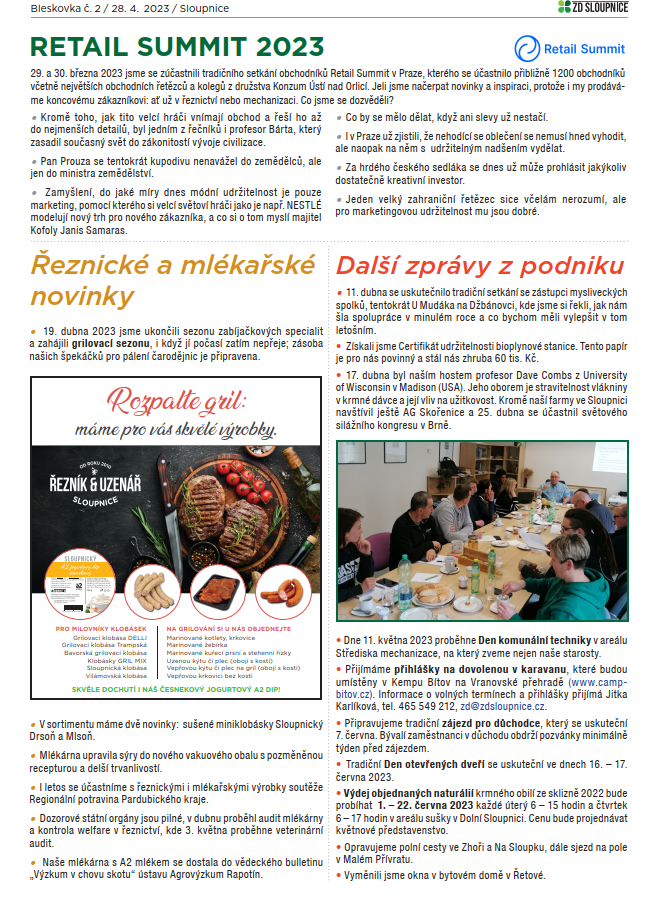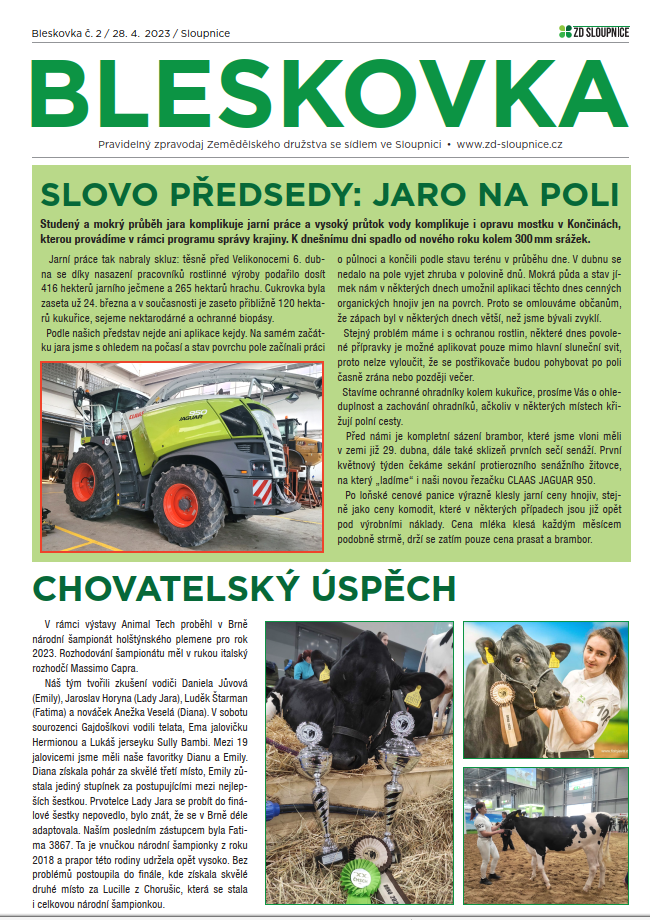 Bleskovka č. 2/2023 / 28.4. 2023/ ZD Sloupnice