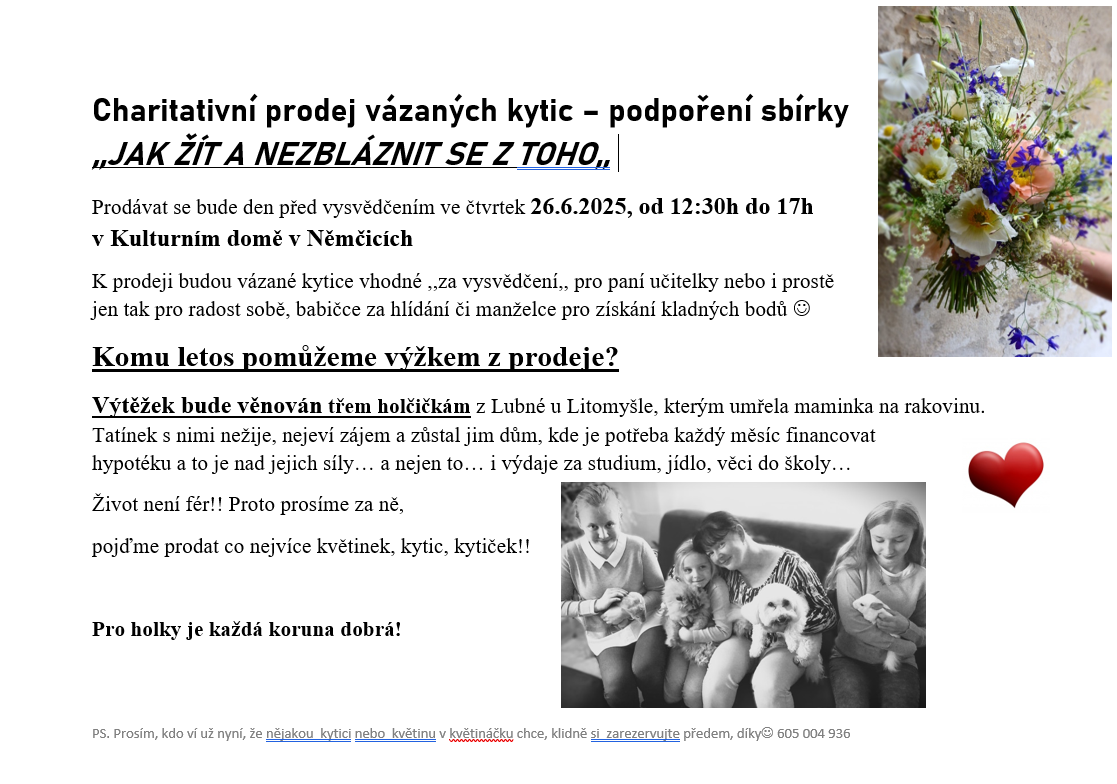 Charitativní prodej vázaných kytic 26. 6. 2025