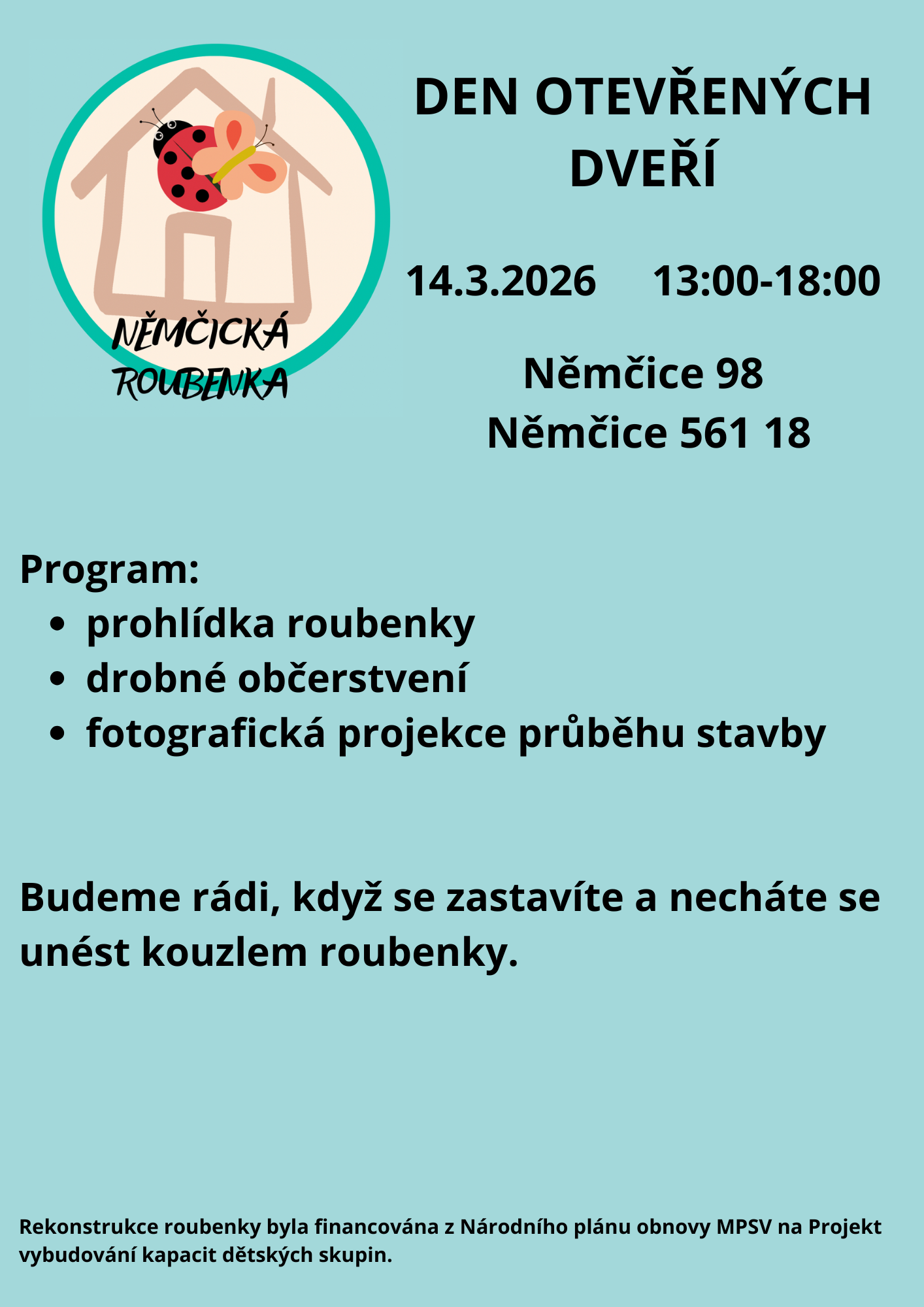 Den otevřených dveří Němčická roubenka 14. 3. 2026
