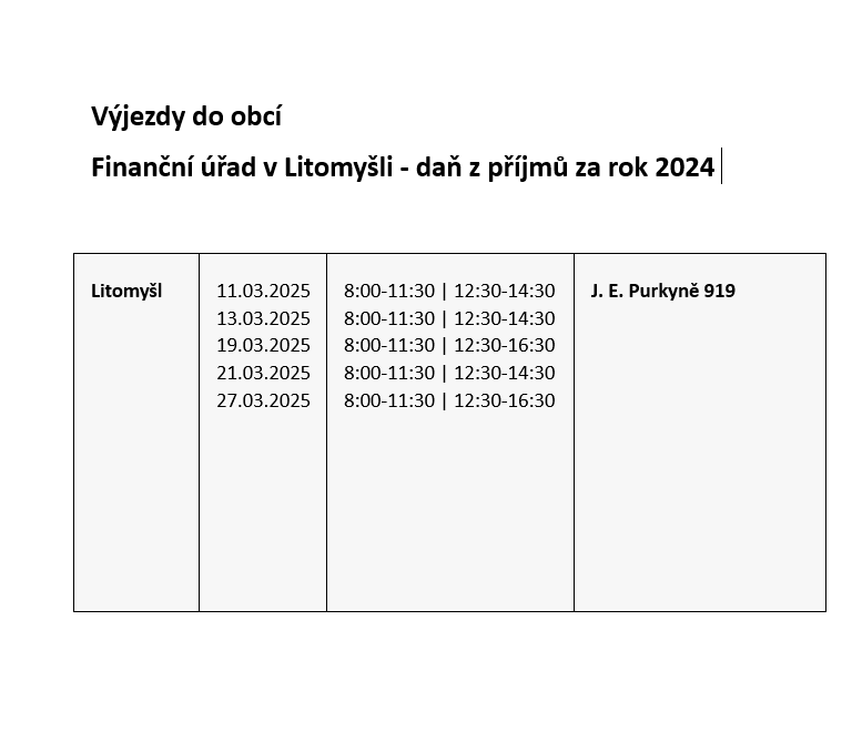 Finanční úřad v Litomyšli - Daň z příjmů za rok 2024