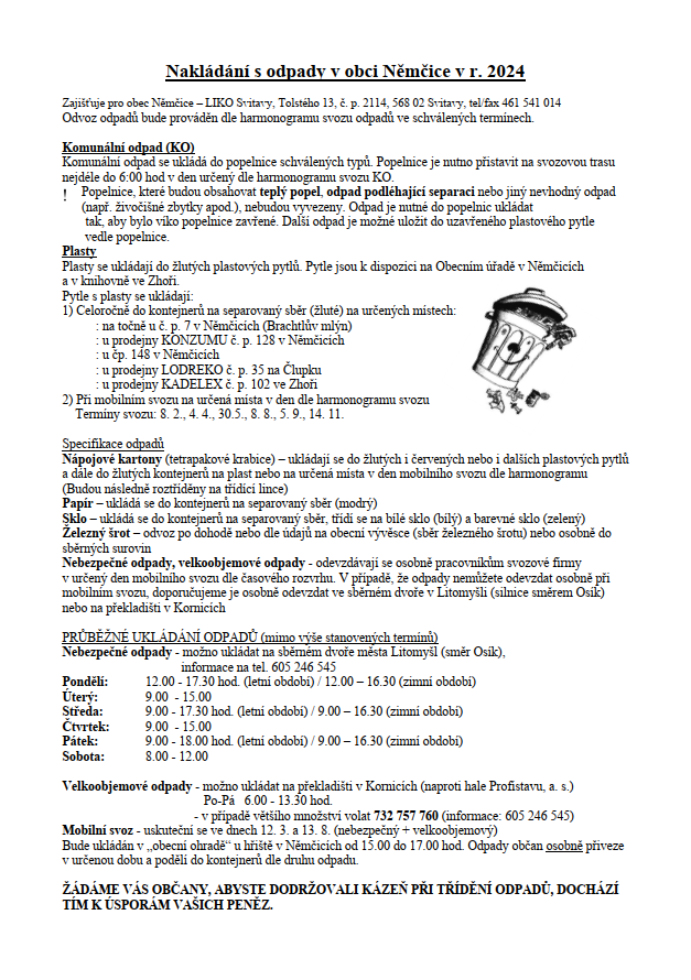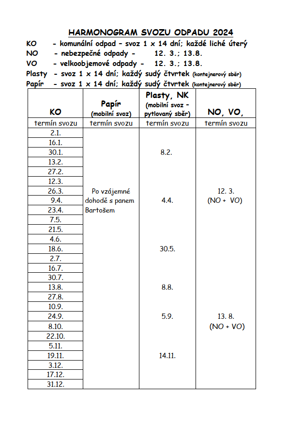 Harmonogram svozu odpadu 2024