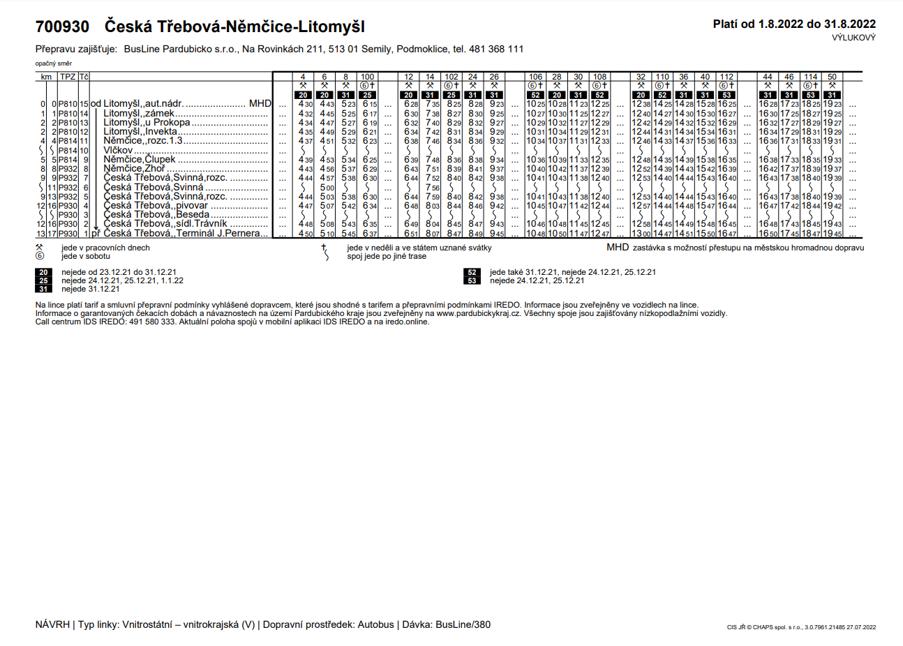 Jízdní řády od 1. 8. 2022 - 31. 8. 2022 VÝLUKOVÝ