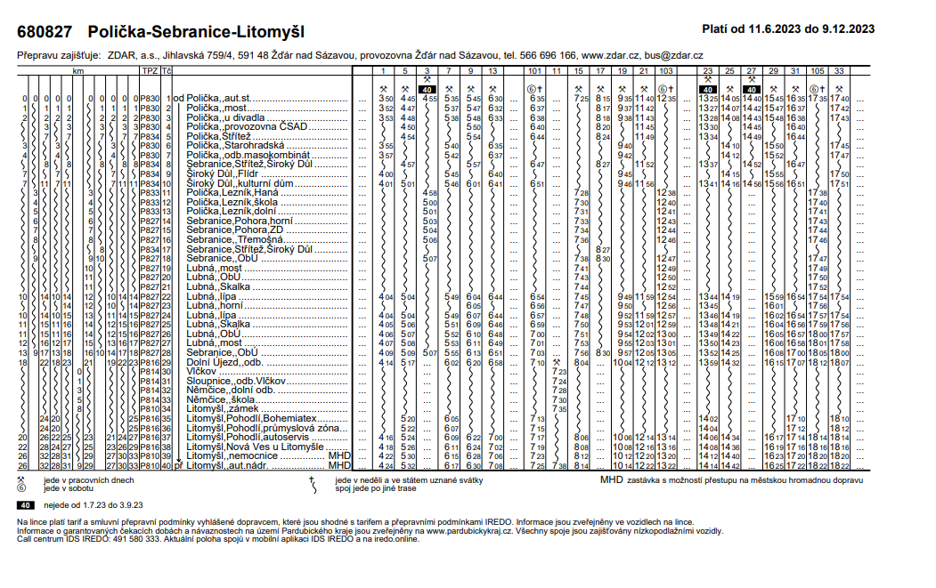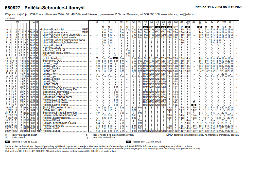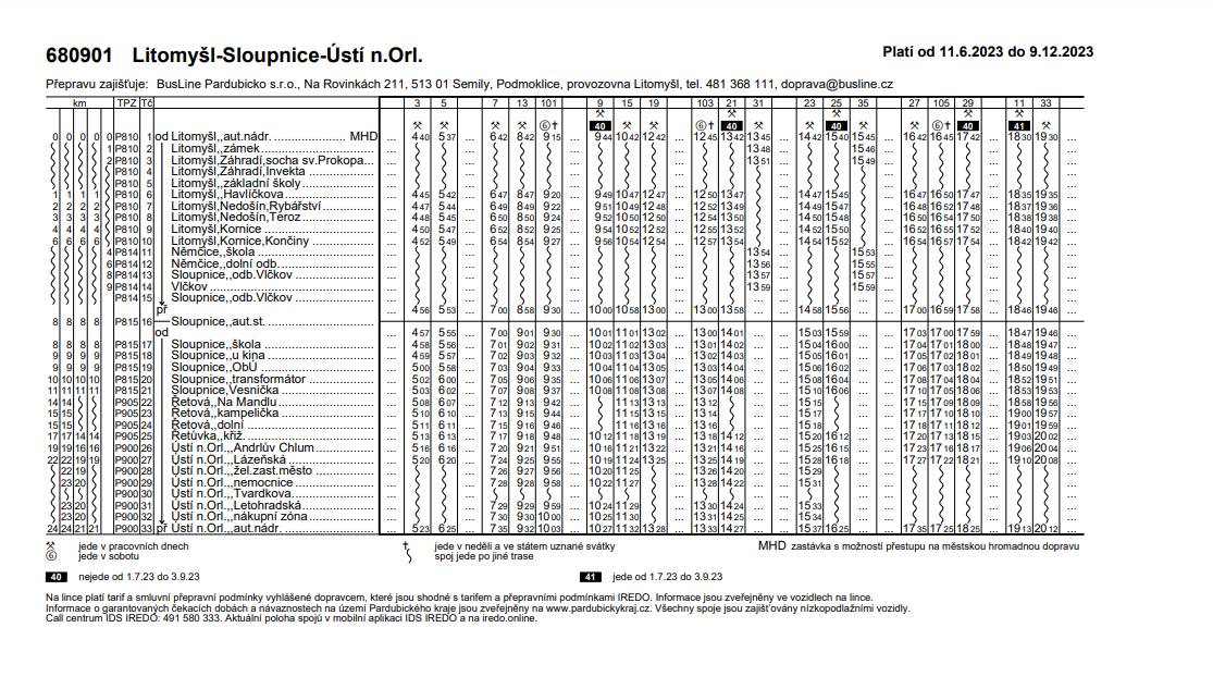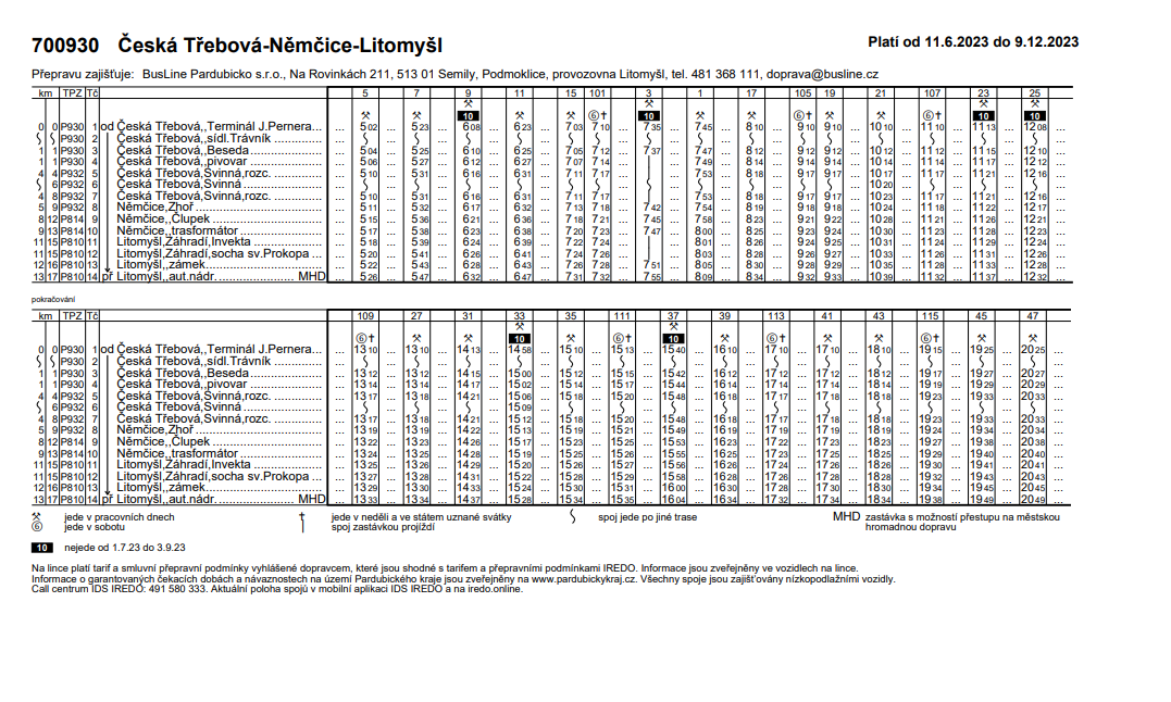 Jízdní řády od 11. 6. 2023 do 9. 12. 2023