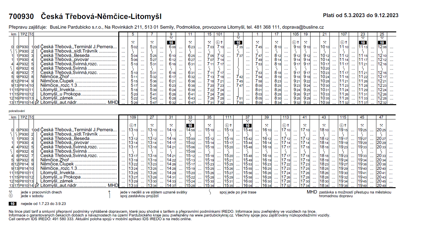 Jízdní řády od 5. 3. 2023