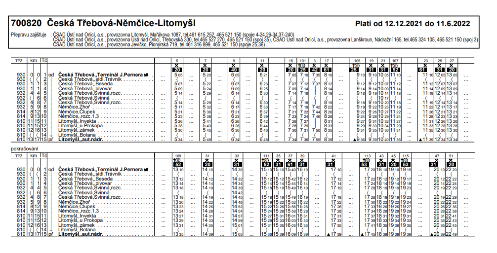Jistě jste v mediích zaznamenali, že od června příštího roku budou autobusovou dopravu zajišťovat v Pardubickém kraji noví dopravci. Jízdní řády, které objednává Pardubický kraj, tedy mají platnost pouze do 11.6.2022. V jízdních řádech od června 2022 neočekáváme žádné zásadní změny. V případě dílčích změn jízdních řádů, ať na základě došlých připomínek nebo dle provozních možností těchto dopravců, budou tyto změny projednány s obcemi na trase daného spoje. Tyto jízdní řády začneme s novými dopravci zpracovávat v průběhu ledna a února příštího roku.