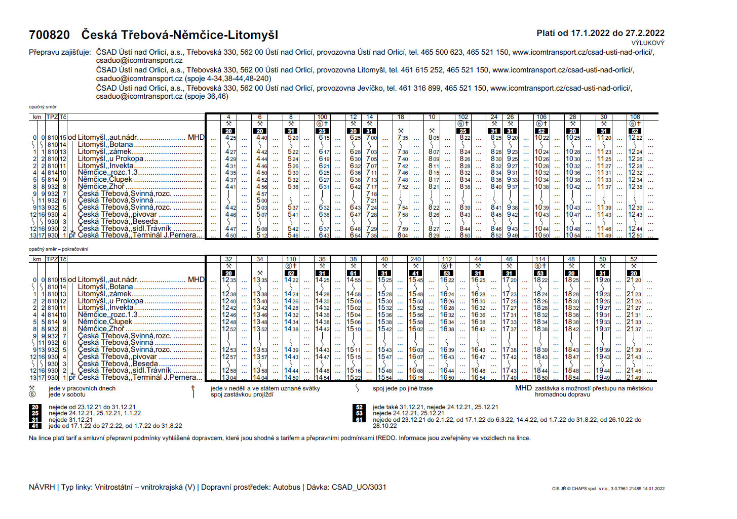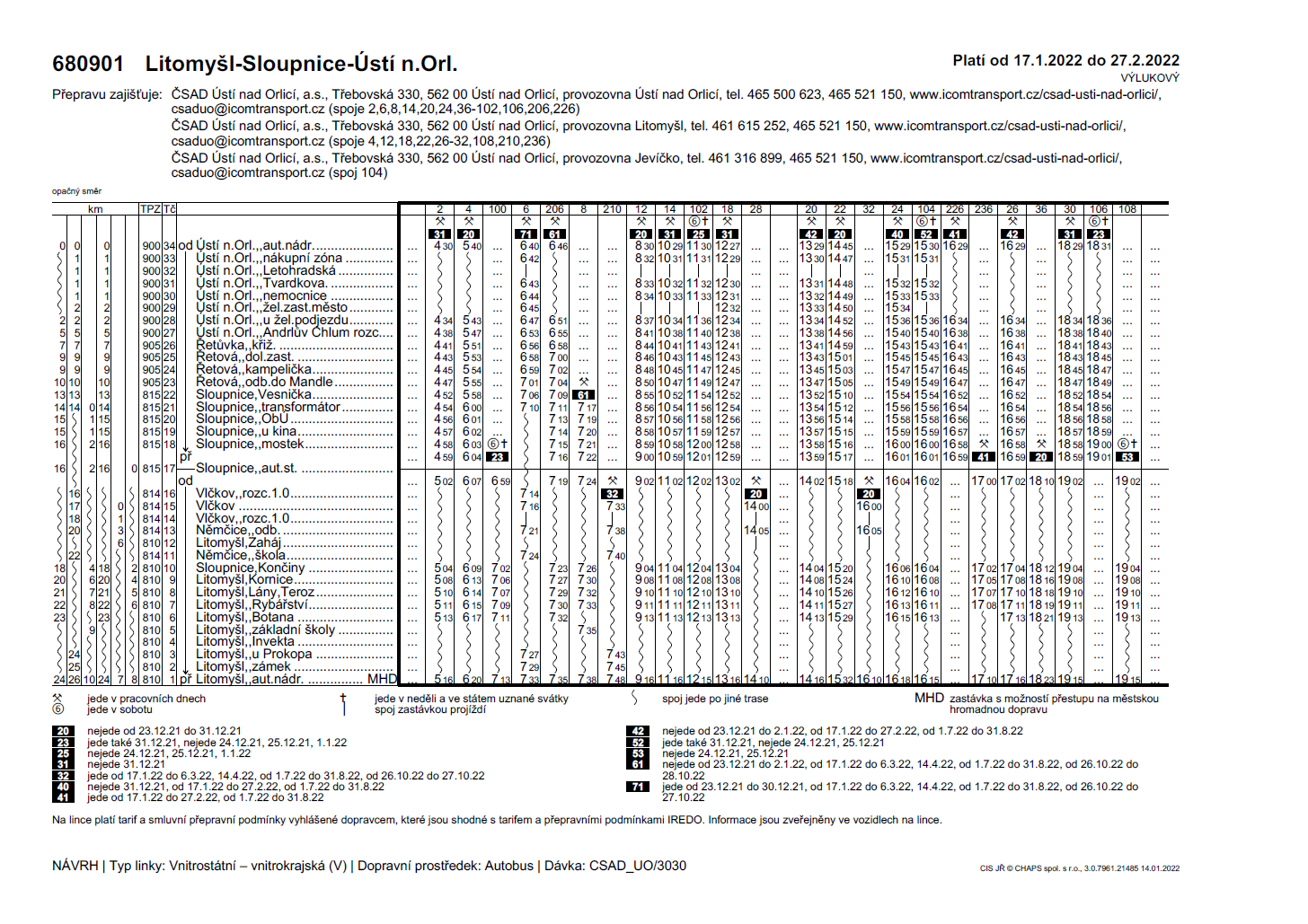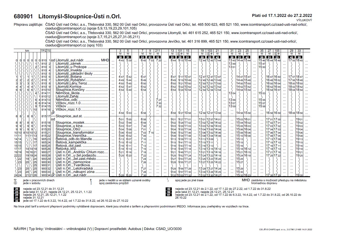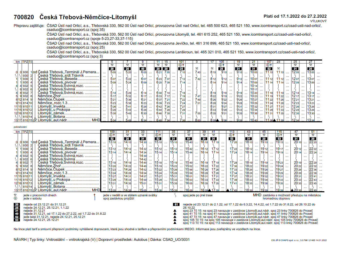 Jízdní řády platné od 17. 1. 2022