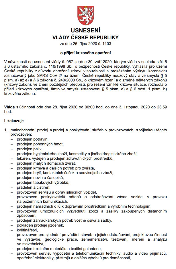 Krizová opatření vlády ČR ze dne 26. října 2020