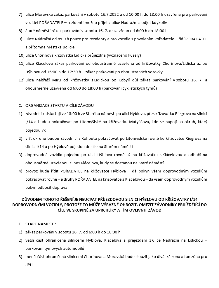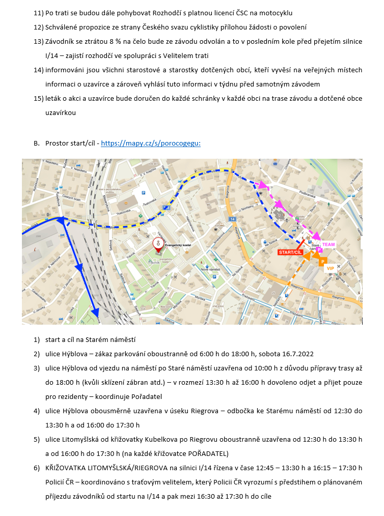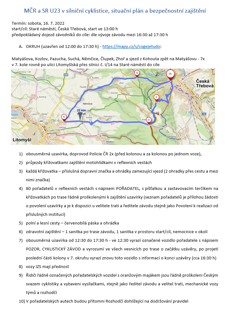 MČR a SR U23 v silniční cyklistice, situační plán a bezpečnostní zajištění