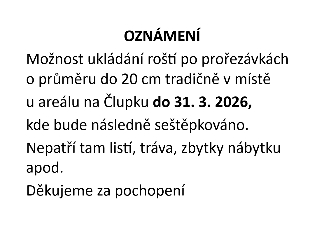Možnost ukládání roští na Člupku, samovýroba dřeva