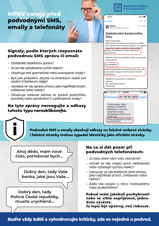 MPSV varuje před podvodnými SMS, emaily a telefonáty