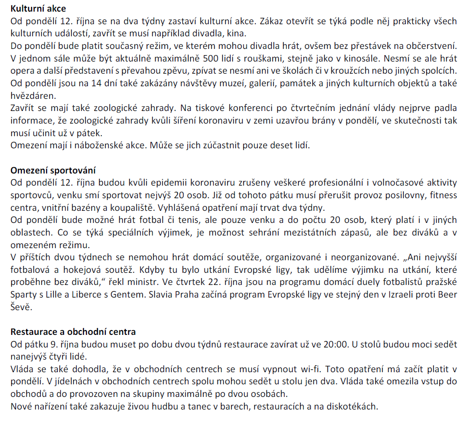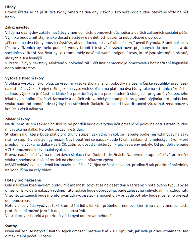 Nová Covid-19 opatření platná do 25. 10. 2020