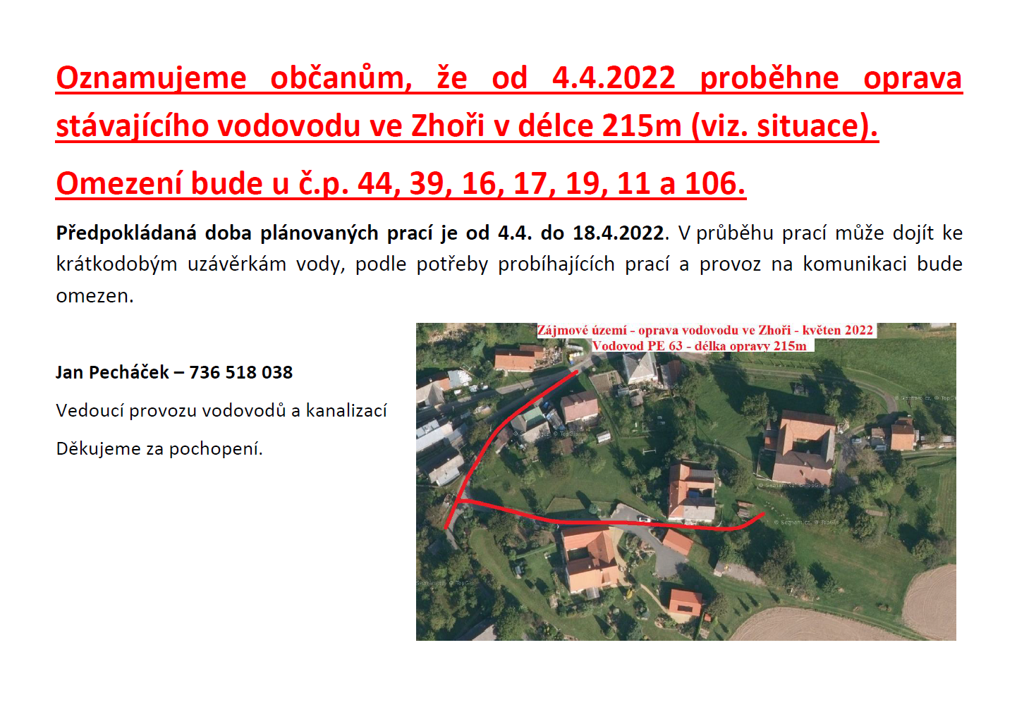 Oprava vodovodu ve Zhoři