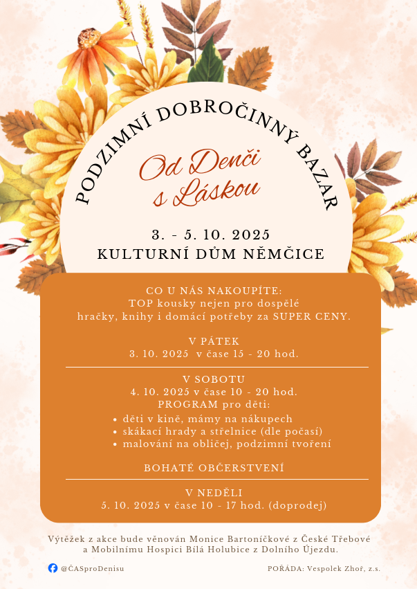Podzimní dobročinný bazar 3.- 5. 10. 2025