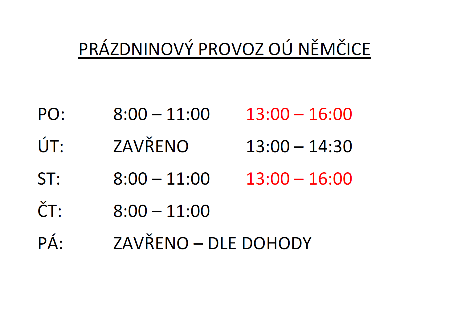 Prázdninový provoz 2022