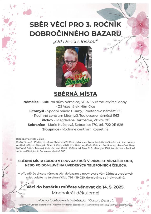 Sběr věcí pro 3. ročník dobročinného bazaru "Od Denči s láskou"