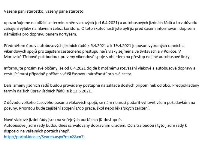 Upozornění na změnu jízdních řádů