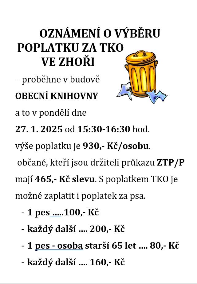 Výběr poplatku TKO ve Zhoř 27. 1. 2025