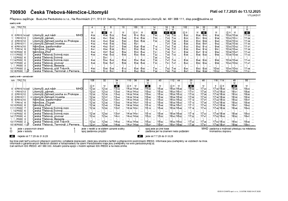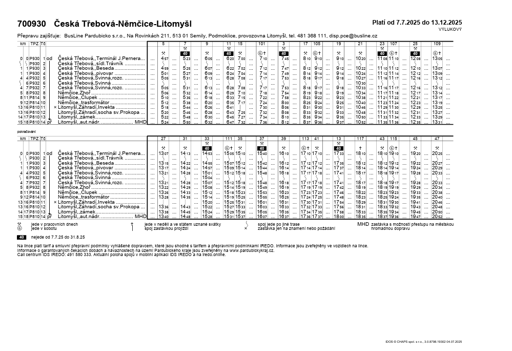 Výlukový jízdní řád od 7. 7. do 31. 12. 2025