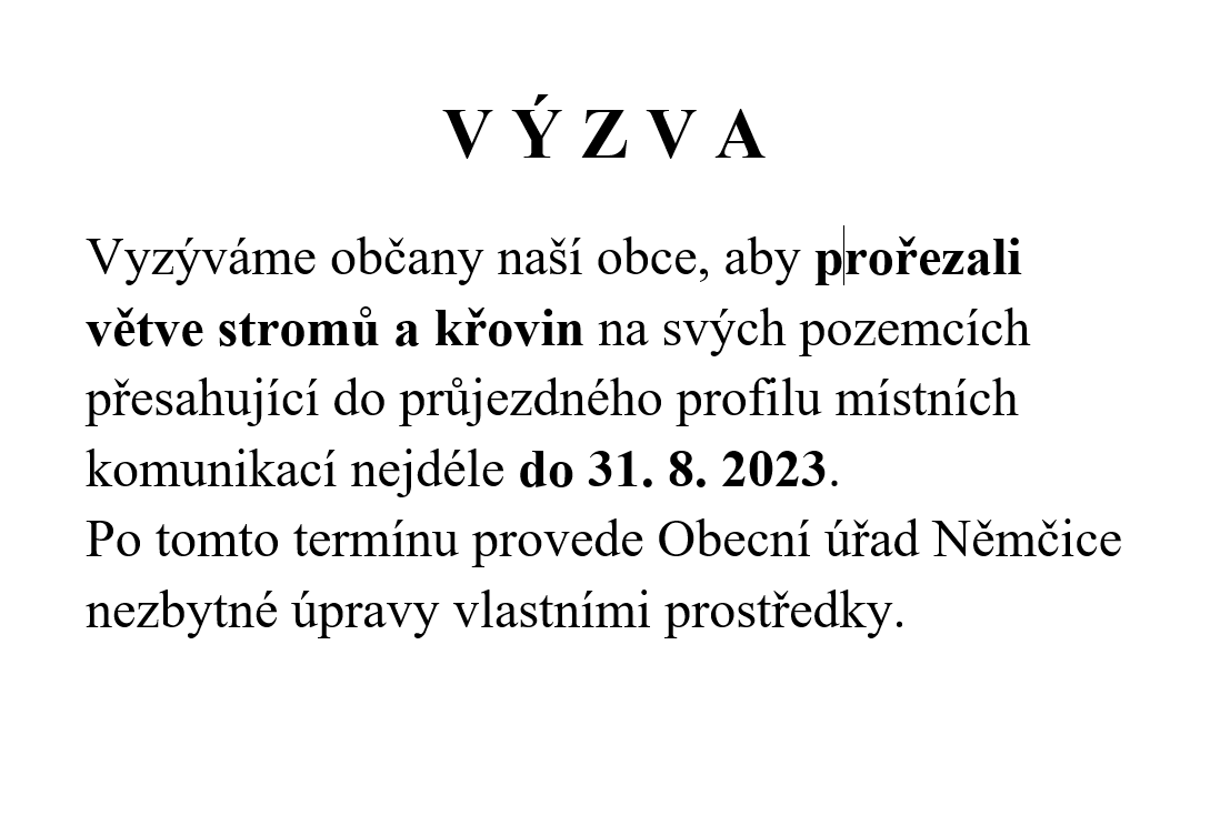 Výzva k prořezání větví stromů a křovin