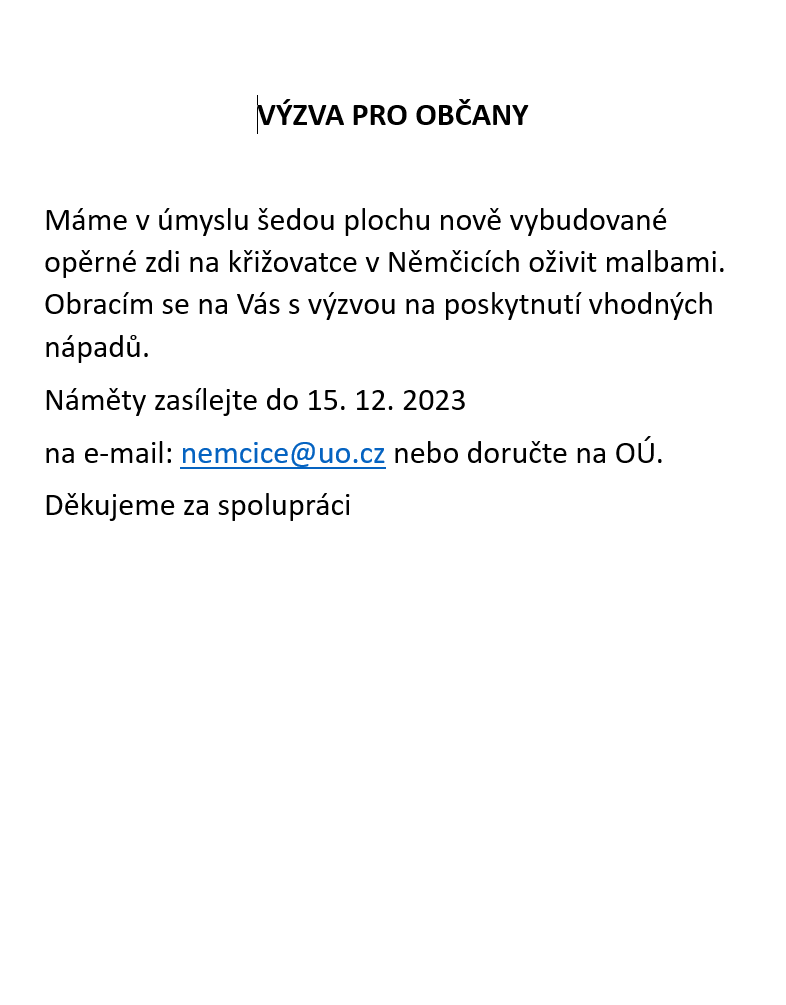 Výzva občanům - nápady na výmalbu zdi