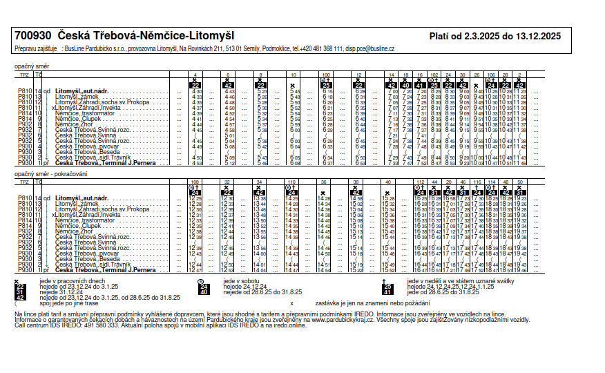 JÍZDNÍ ŘÁD OD 2. 3. 2025