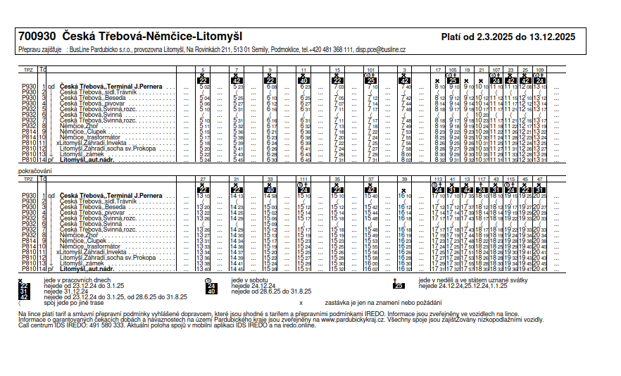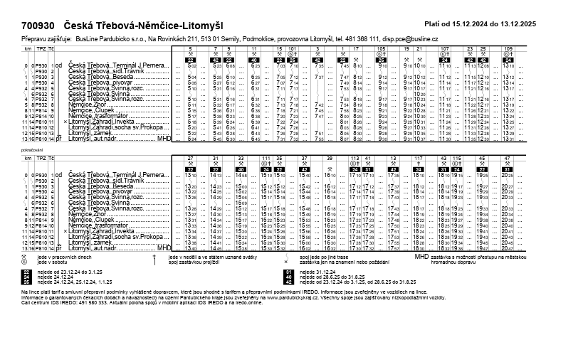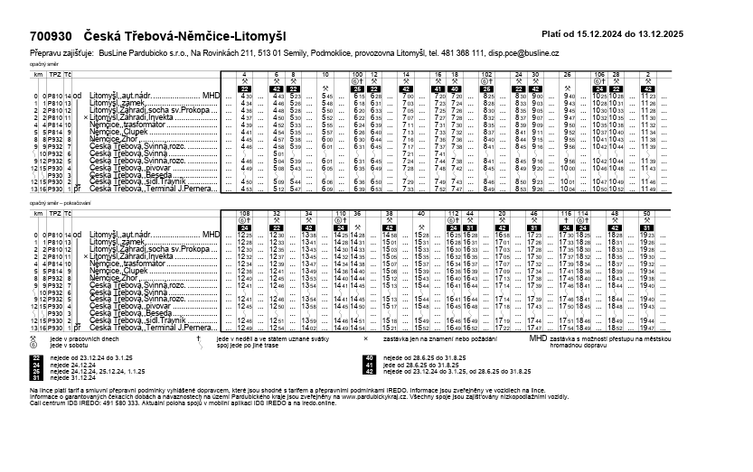 Spoje 1 a 3, které jely 10 minut po sobě, budou sloučeny do jednoho a pojedou pod číslem 3 z Litomyšle v 7:40. Jedná se o vratný spoj zpět do Litomyšle. Z České Třebové je možné pro cestu do Litomyšle využít i spoj 700931/14 s odjezdem 7:10.